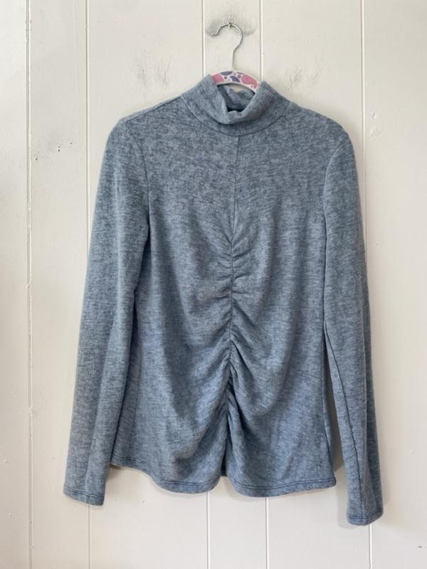 Add a flirty twist to your wardrobe with this Ruched Mock Neck Top. The charming ruched detailing adds texture and fun, while the mock neck brings a touch of chic sophistication. Perfect for dressing up or layering down, this top effortlessly balances playful style with everyday comfort.