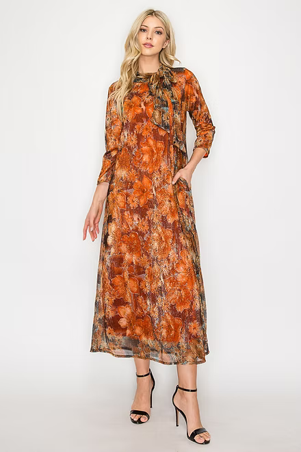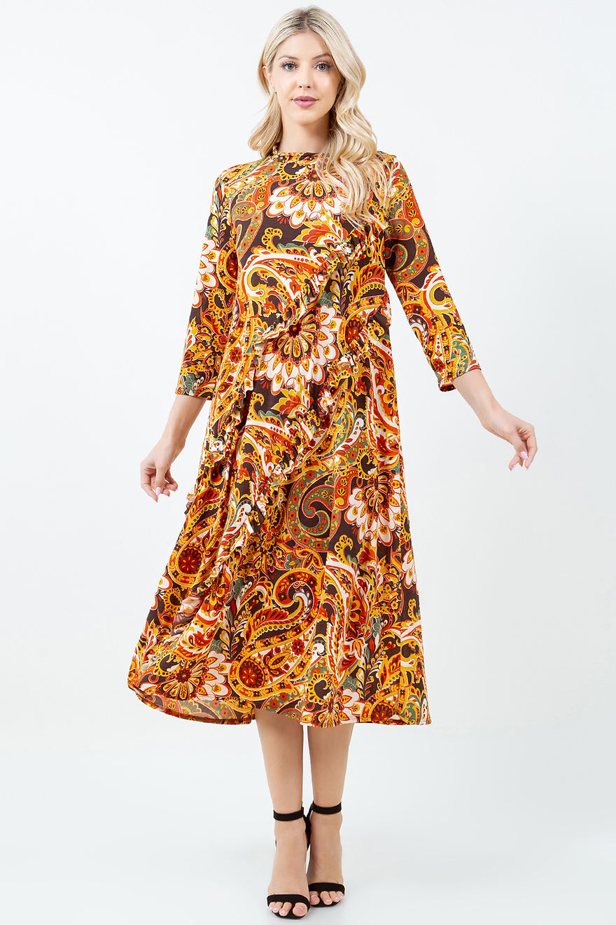 MULTI COLOR MOCK NECK MIDI DRESS W/SIDE POCKET