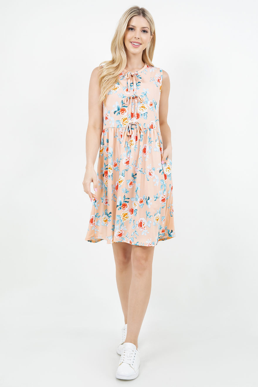 FRONT TIE BOW TANK TUNIC DRESS WITH SIDE POCKTES