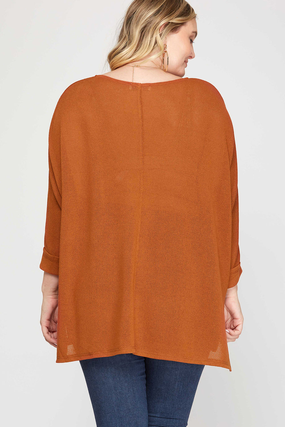 RUST PLUS -3/4 BATWING SLEEVE LOW GAGE HI LOW KNIT TOP-SKPSS6516R