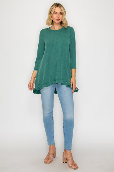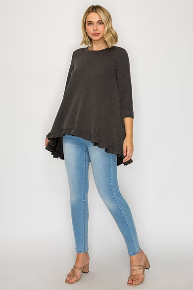 PLUS SIZE TEXTURED 3/4 SLEEVES HI-LO TUNIC TOP