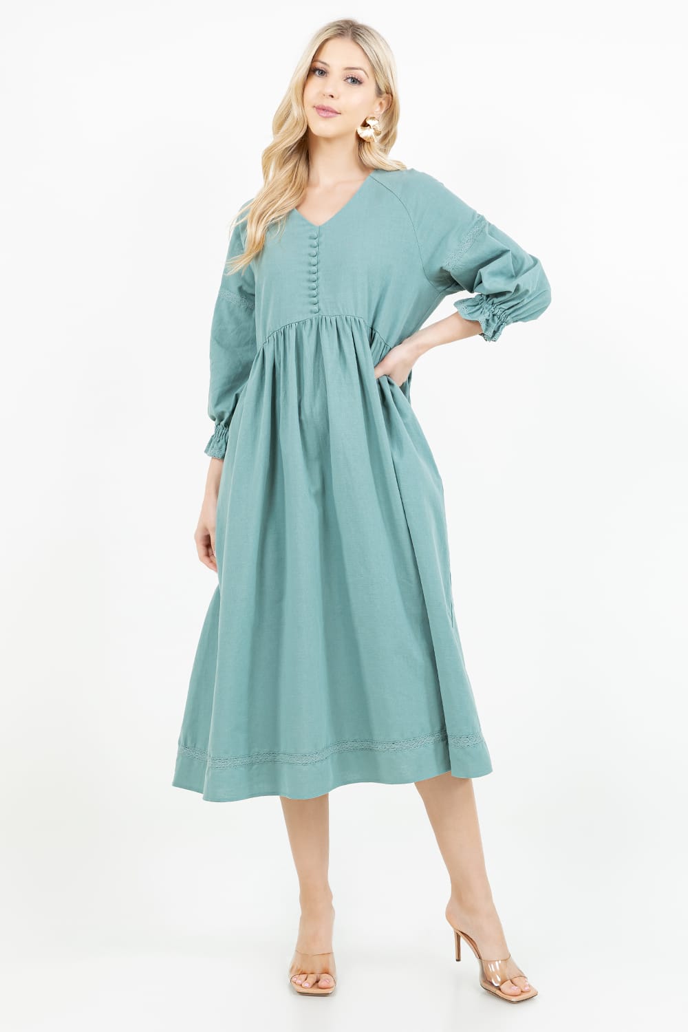 MIDI DRESS DETAIL RUFFLED ROUND NECK