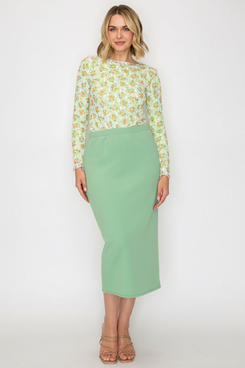 PLUS SIZE A-LINE RUFFEL MIDI SKIRT