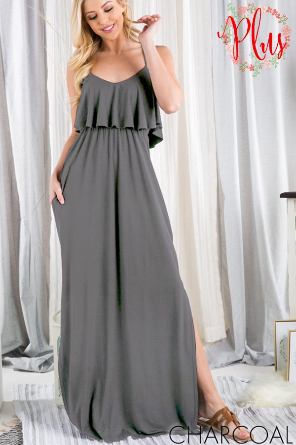 RUFFLED SLEEVELESS SOLID PLUS MAXI DRESS
