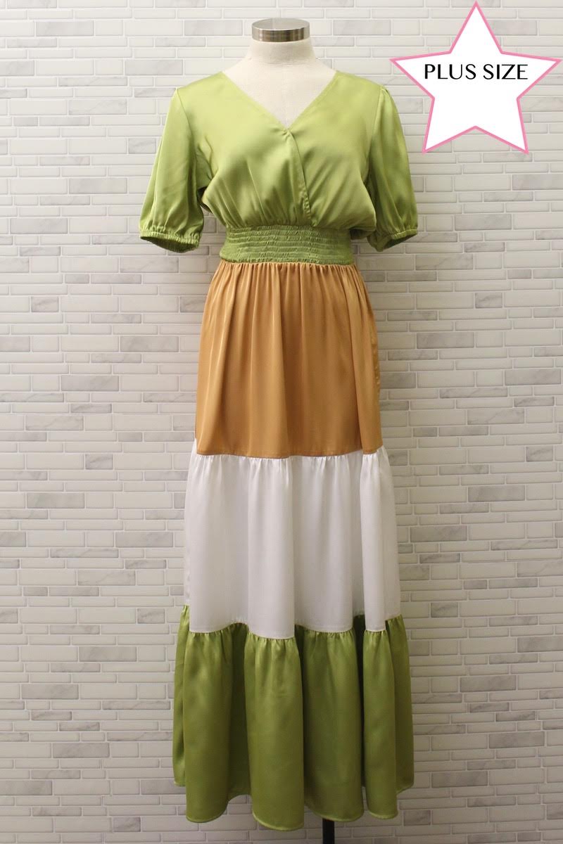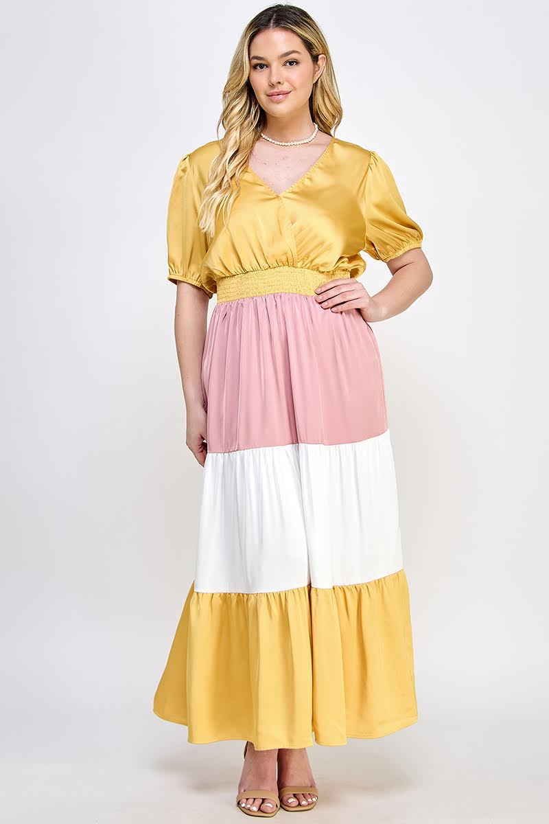 PLUS SIZE COLOR BLOCK MAXI DRESS