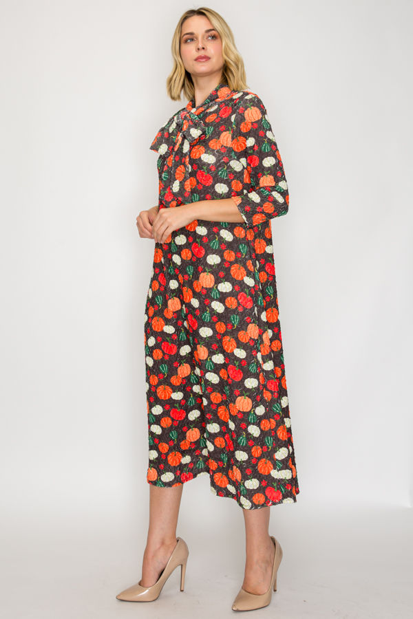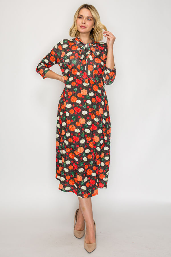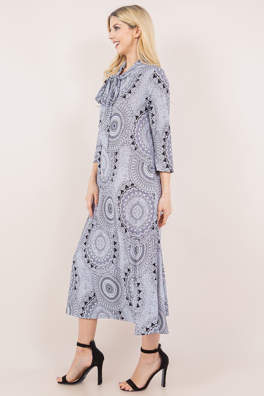 PLUS SIZE TIE-NECK A-LINE MODEST DRESS WITH SIDE POKTES
