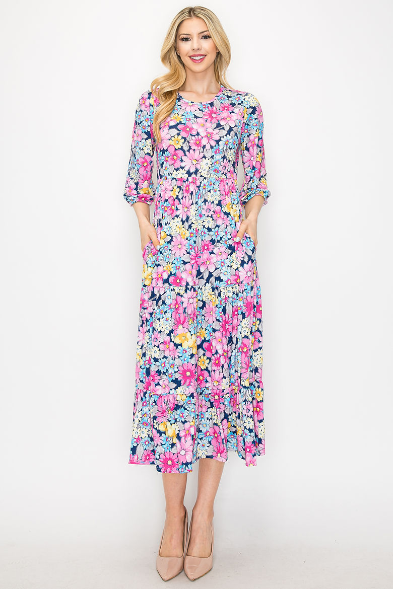 TIERED RUFFLE MIDI DRESS WITH SIDE POCKETS-SHVL5886