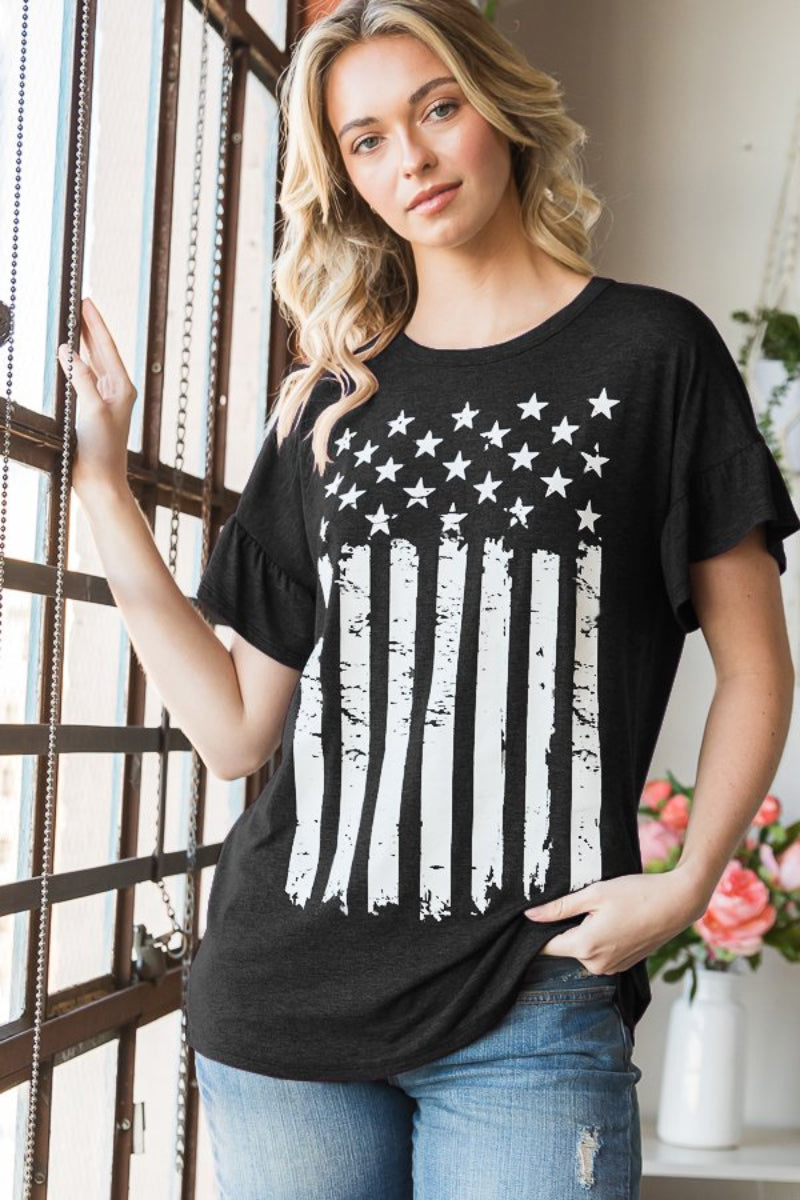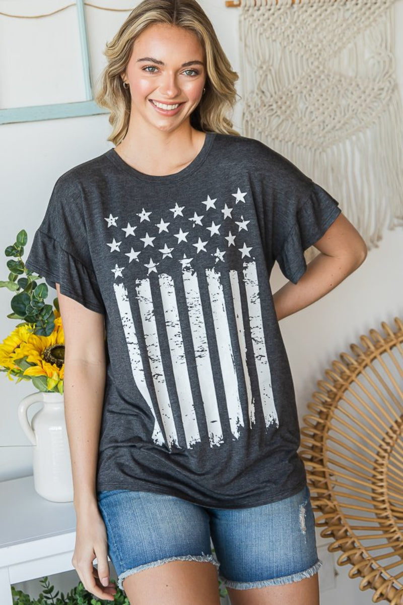 ROUND NECK SOLID TOP WITH FLAG THEME PRINT
