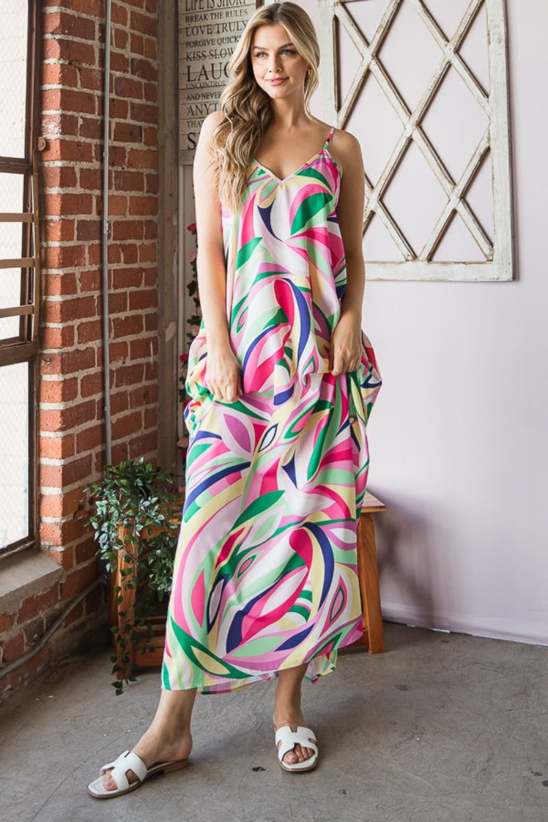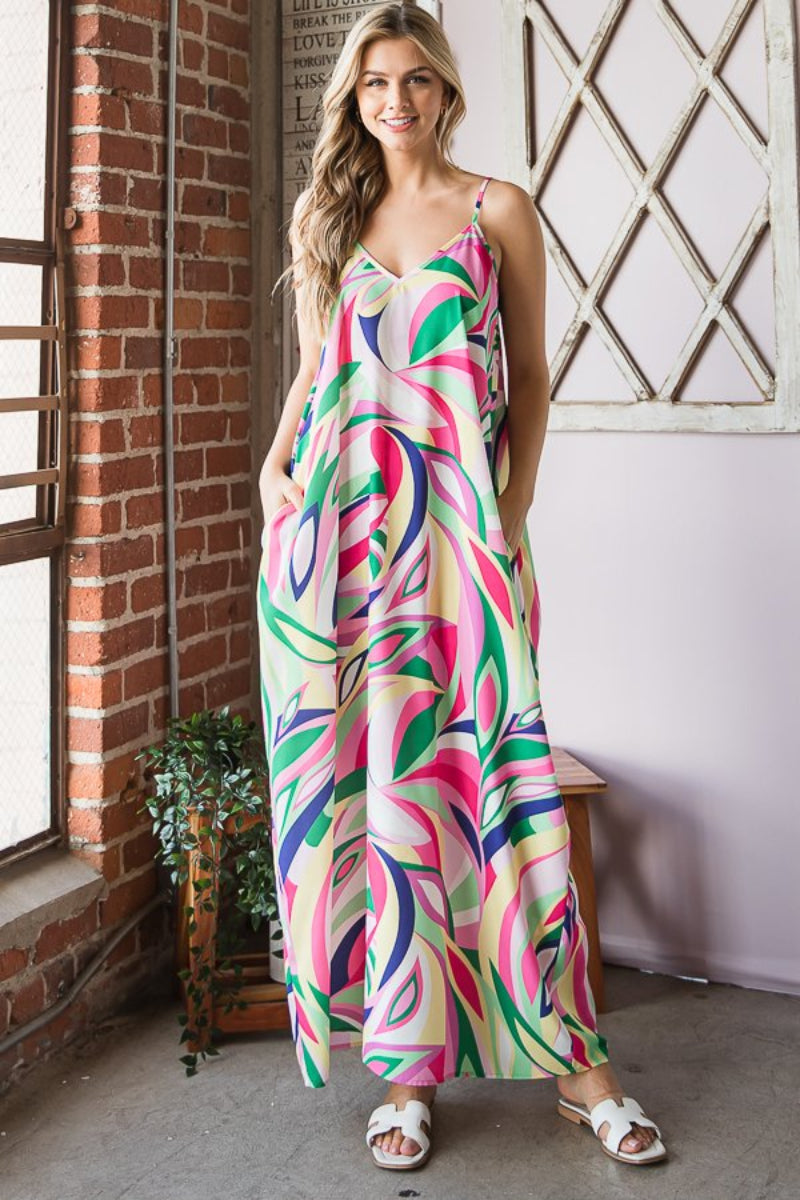 SLEEVELESS V NECK MULTI COLOR PRINT MAXI DRESS-ED