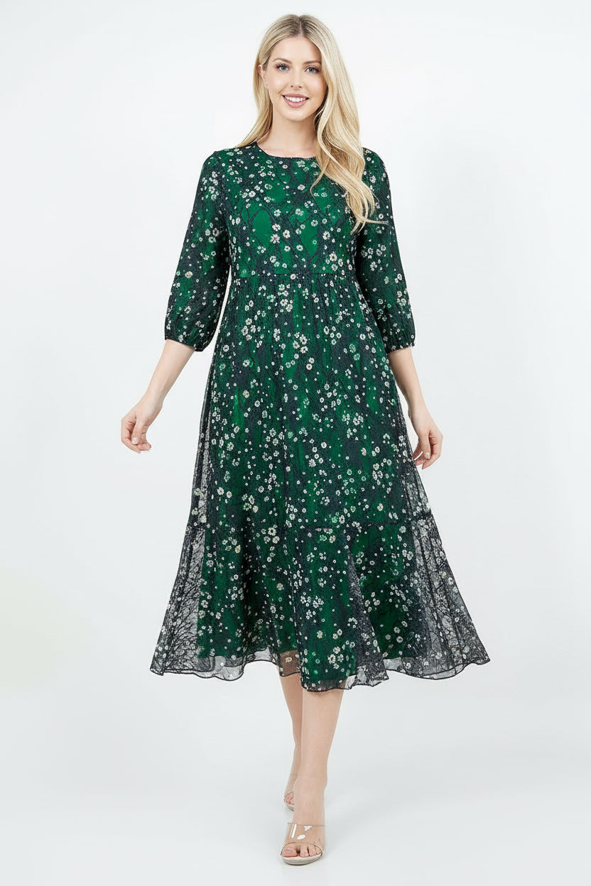 CREW NECK 3/4 SLEEVE PLUS SIZE MIDI DRESS
