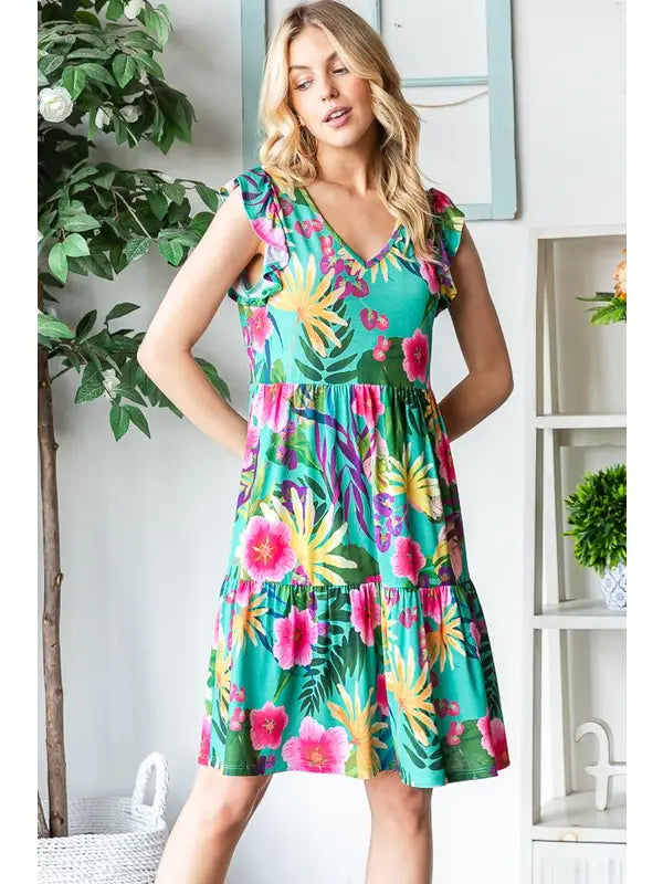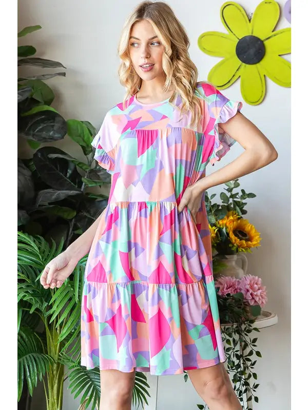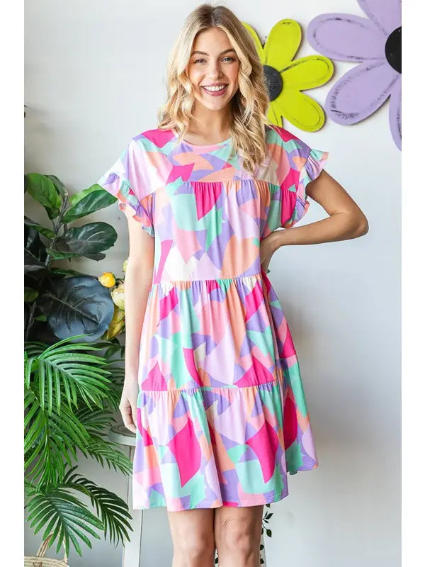 TIERED ELASTIC WAIST WOVEN MINI DRESS SKSY6888