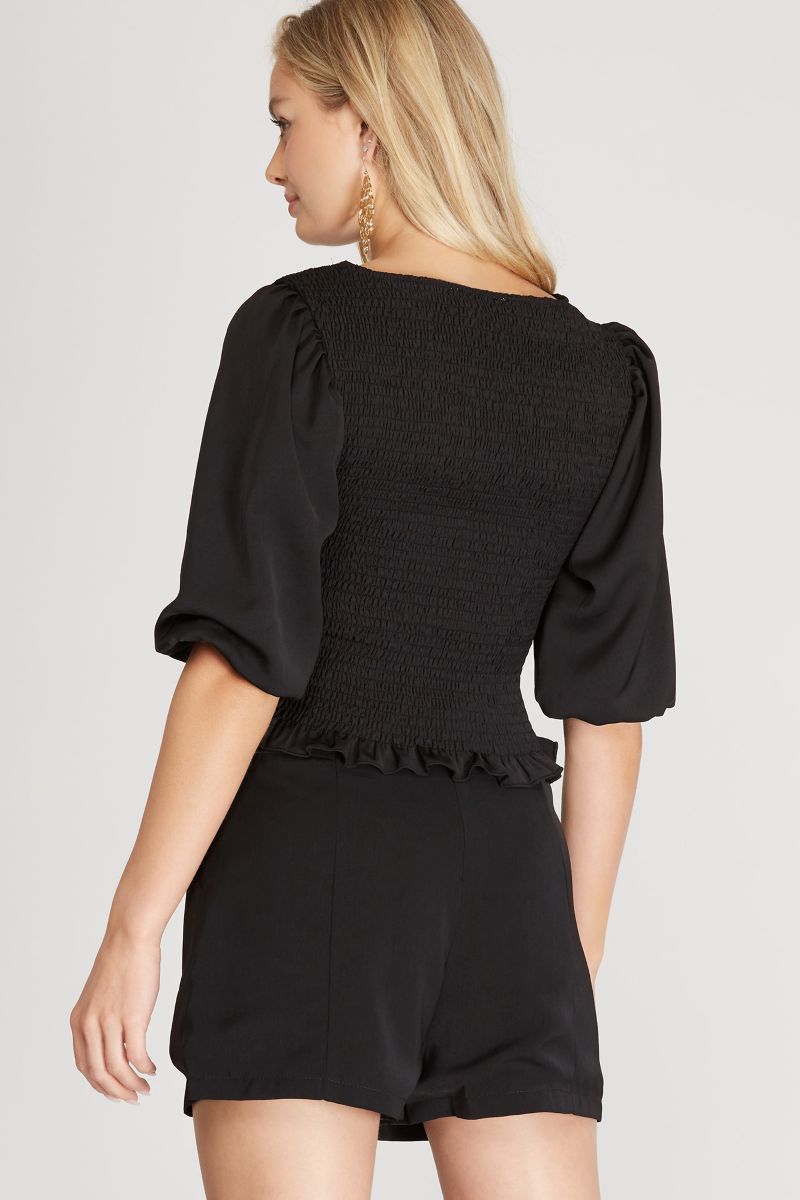 BLACK PUFF SLEEVES 3D MESH FLOWER TOP
