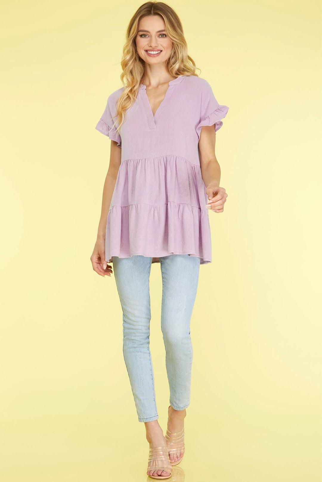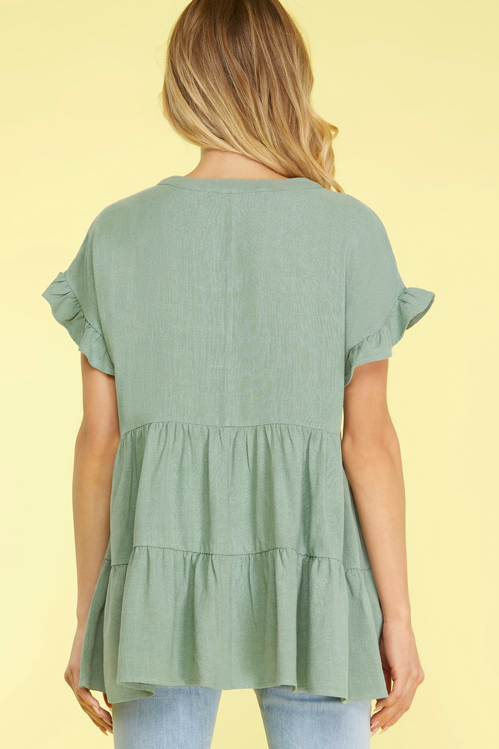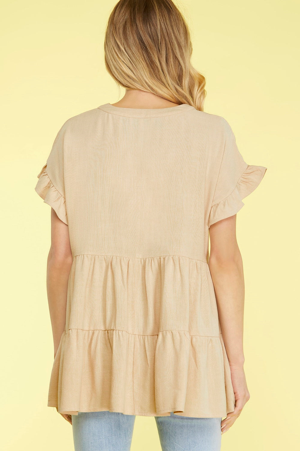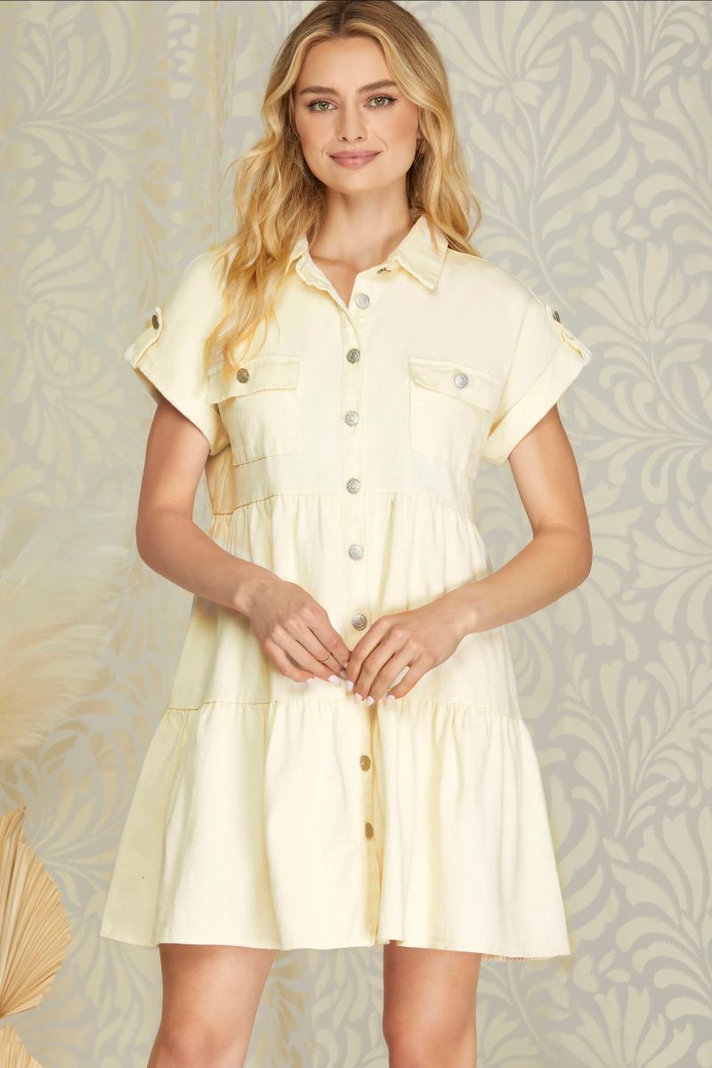 SHORT SLEEVE TIERED BUTTON DOWN SHIRT COLLARED WOVEN DRESS