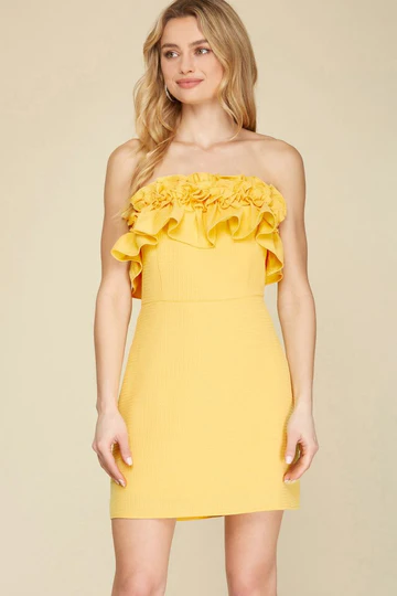Turn heads in this hot pink sleeveless mini dress featuring playful ruffled details and a textured woven fabric. Its vibrant color and flirty silhouette make it perfect for parties or sunny days out. Lightweight and fun, this dress adds a pop of bold style to your wardrobe.
