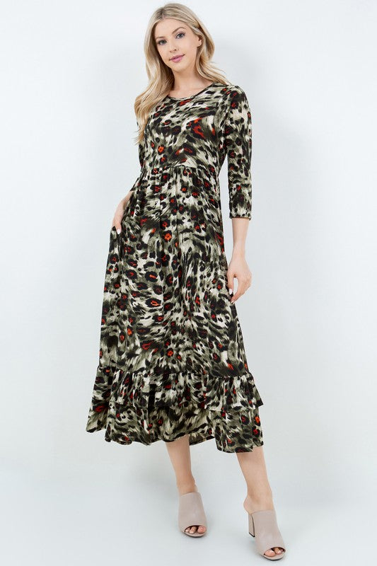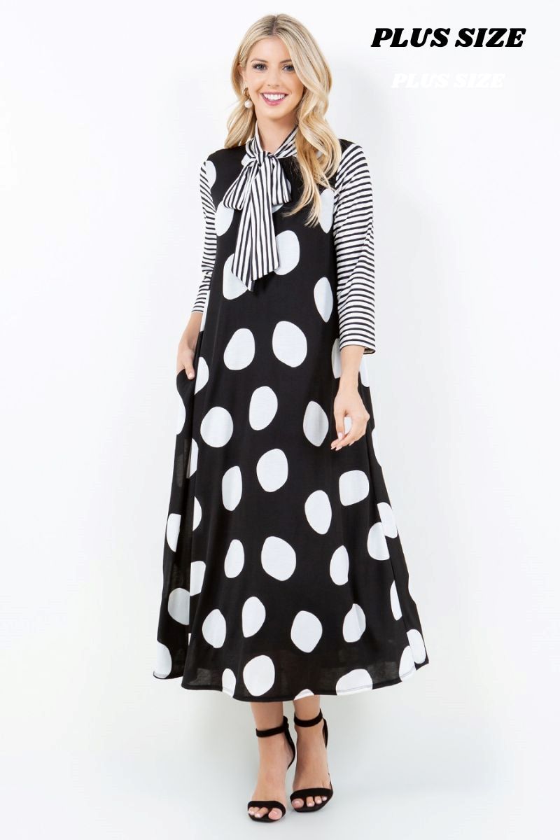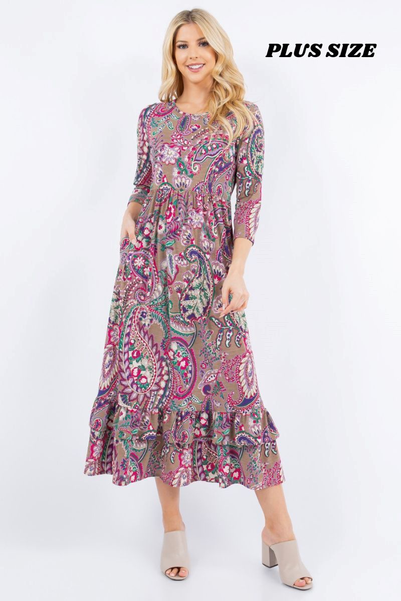 CREW NECK 3/4 SLEEVE PLUS SIZE MIDI DRESS