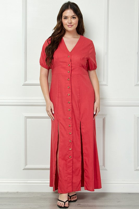 IVORY BUTTON DOWN LONG SLEEVES PLUS SIZE MAXI DRESS-M51743WX