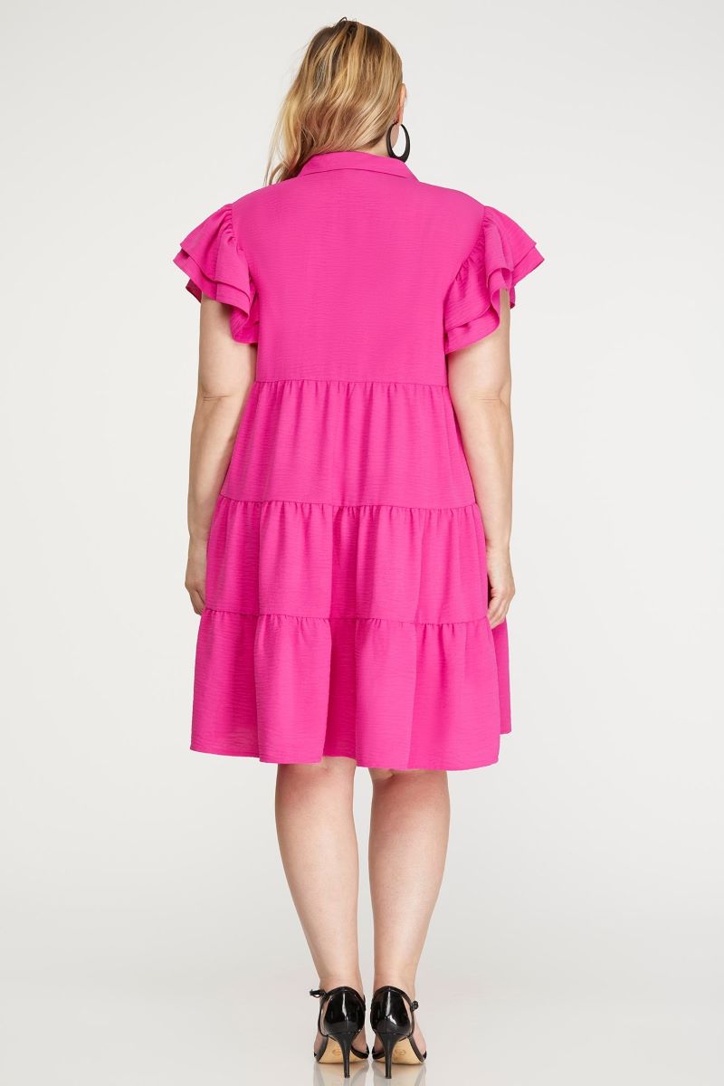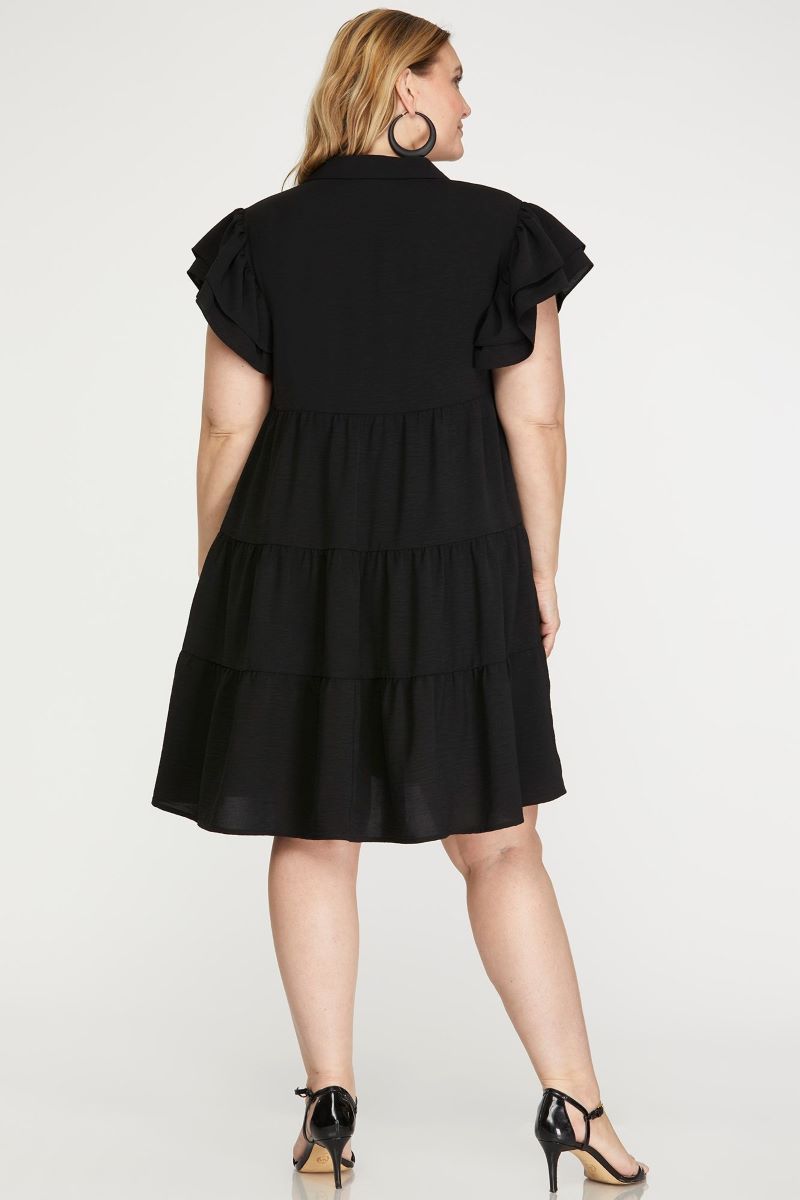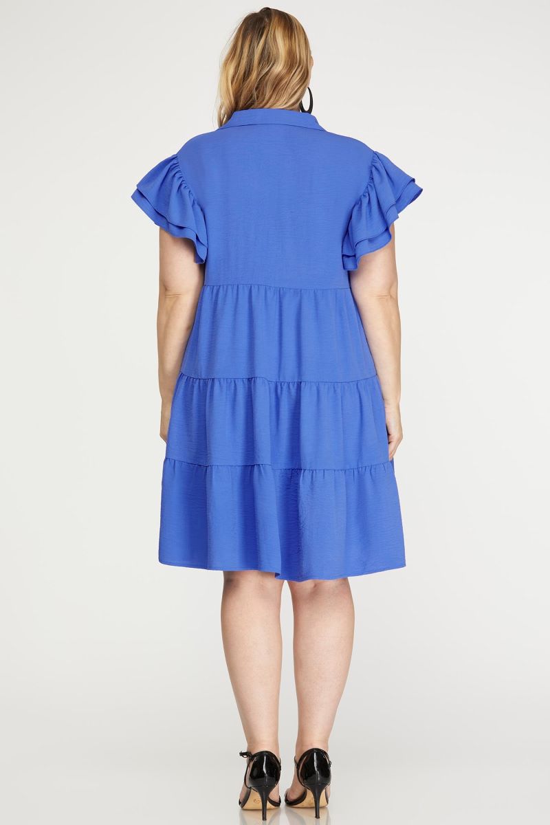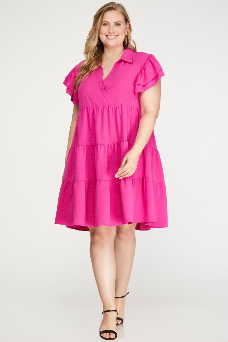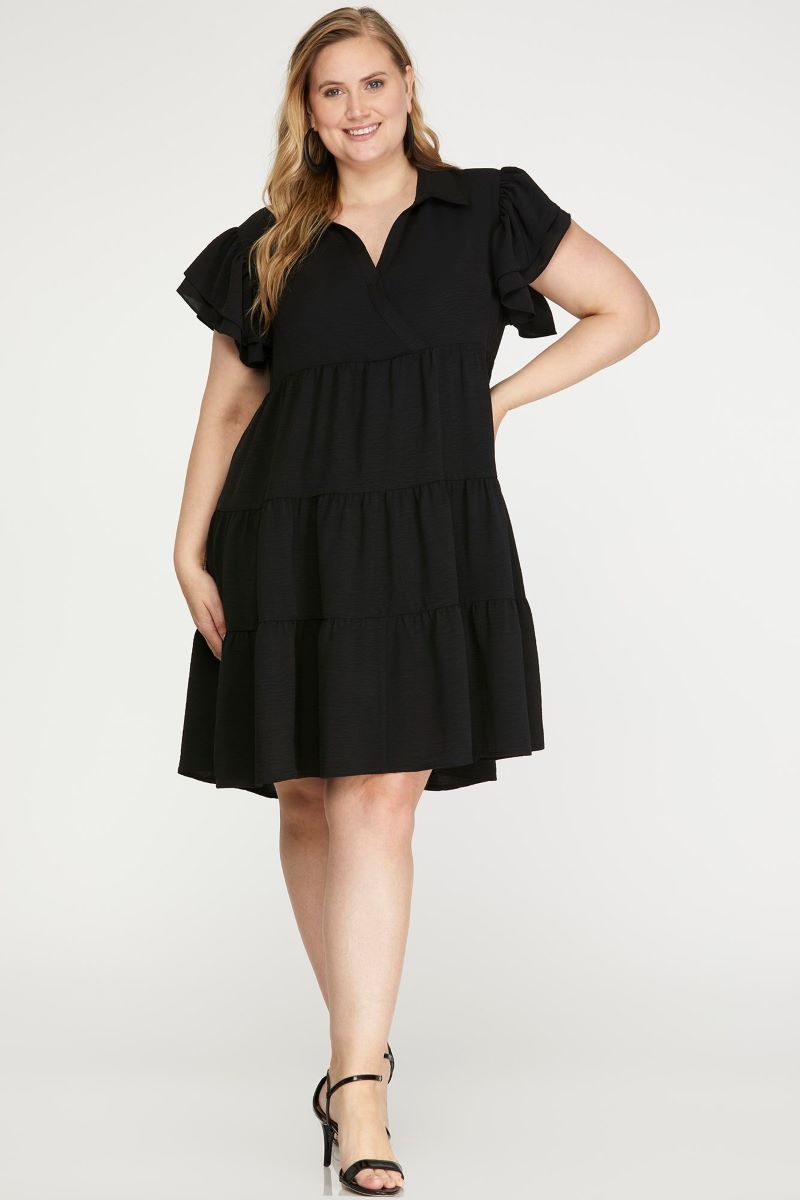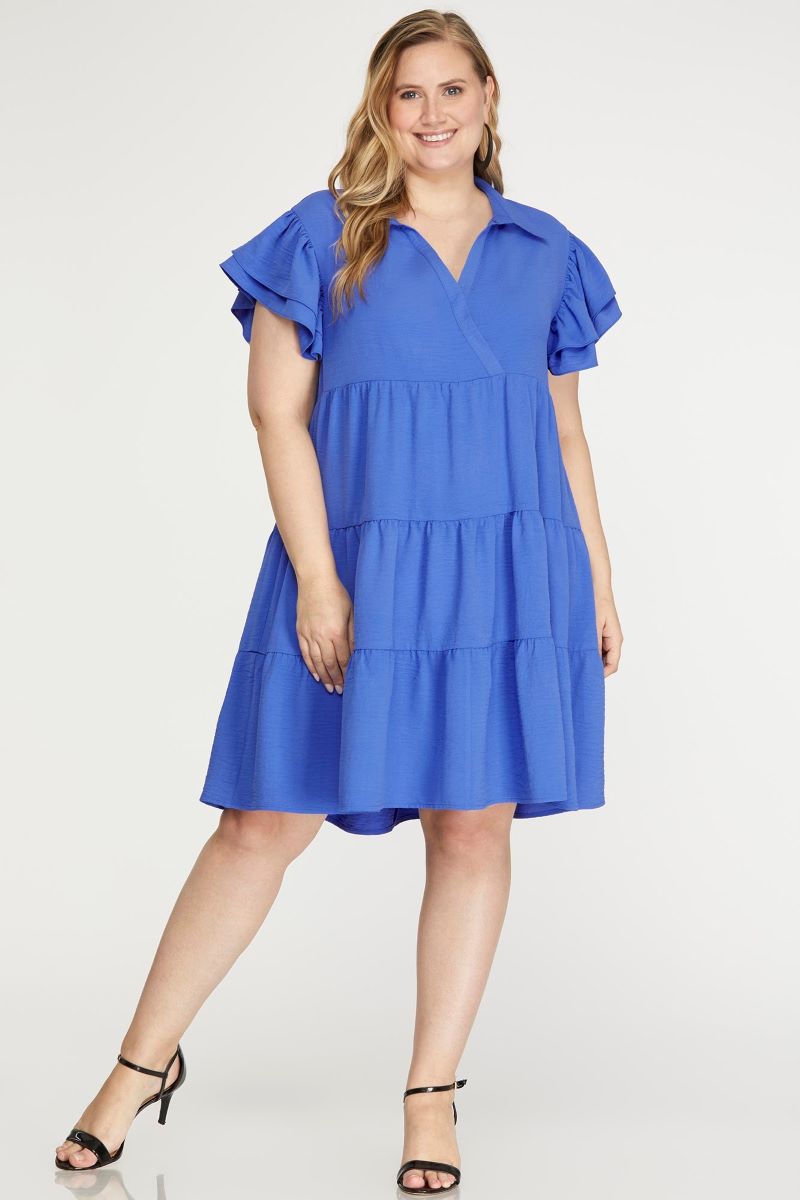 TANGERINE FLUTTER SLEEVE SMOCKED TIRED PLUS SIZE MAXI DRESS SKPSY6654