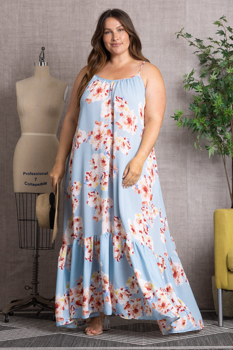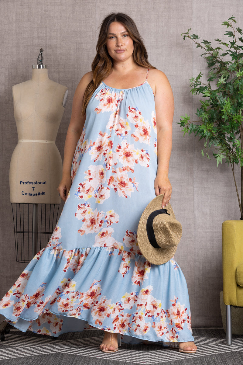LT. SAGE ADJUSTABLE STRAP TIERED WOVEN PLUS SIZE MAXI DRESS