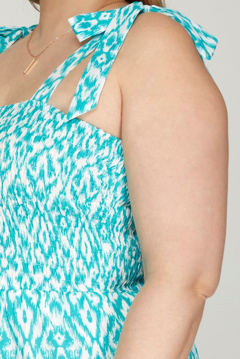 Dive into effortless charm with the Aqua Bowties Smocked Tiered Maxi Dress! This plus-size beauty features playful bowtie accents and soft smocking that flatters every curve. Lightweight tiers create a breezy silhouette perfect for sunny days, while handy pockets keep your essentials close. Embrace comfort and style in one delightful dress made to brighten your wardrobe with a splash of aqua fun!