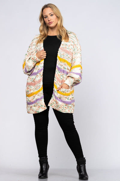 MULTI COLOR STRIPE OPEN CARDIGAN HMSJ1006-54 PLUS