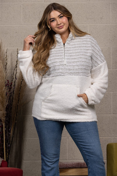 LIGHT GREY TEAL PULL OVER PLUS SIZE SWEATER TOP-PTJ11307X