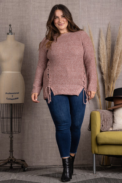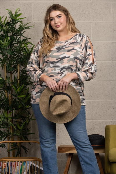 BLUSH PINK LONG SLEEVE PLUS SIZE TOP-ET5119