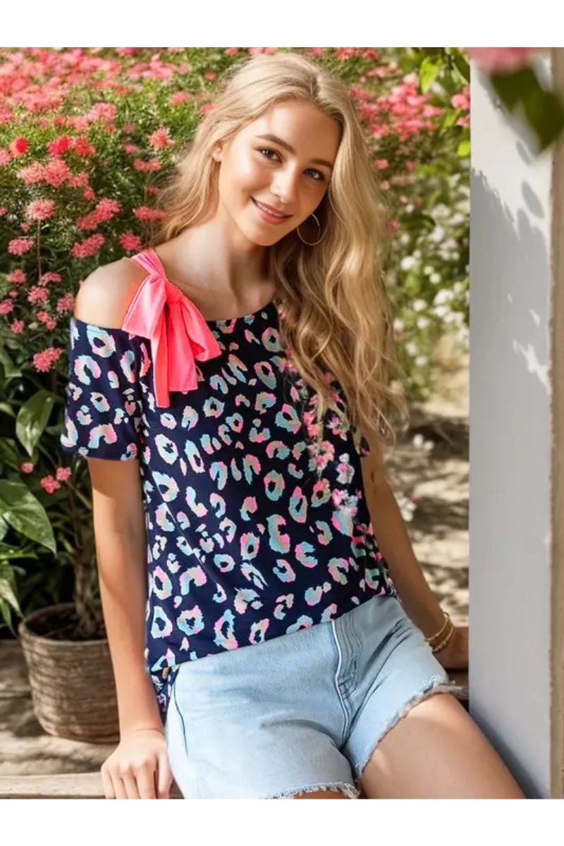 Celebrate your curves with the Navy Animal Print Self-Tie One Shoulder Plus Size Top! This playful design features a trendy one-shoulder cut and a self-tie detail that lets you adjust the fit just right. The bold animal print adds a fun, confident vibe to your look, perfect for turning heads wherever you go.