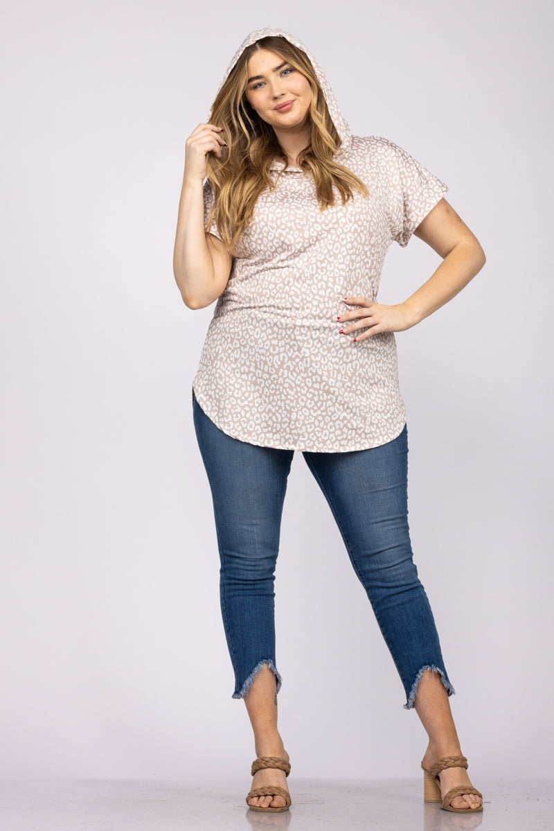 TAUPE CHEETAH PRINT PLUS SIZE HOODIE T2478