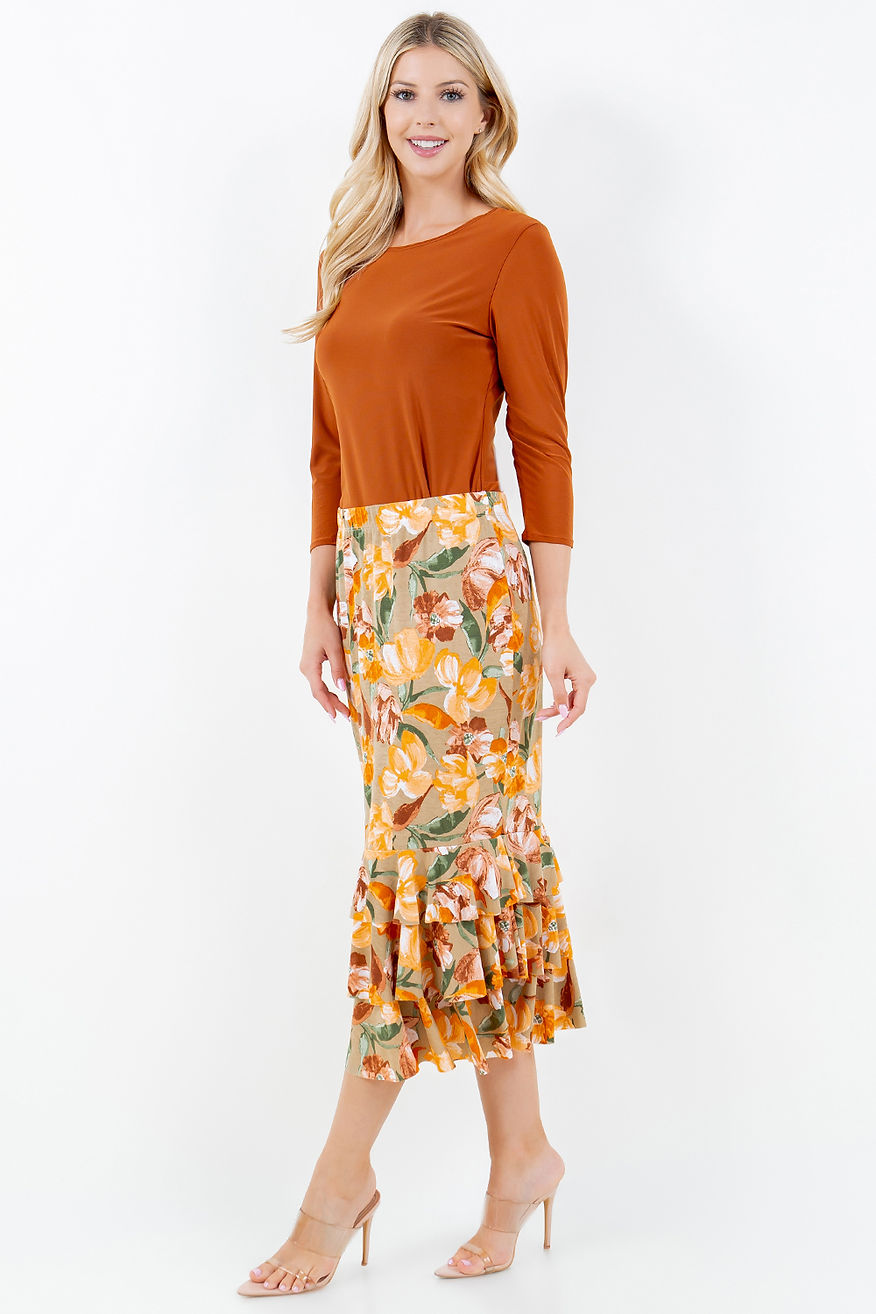 PLUS SIZE A-LINE RUFFLE MIDI SKIRT