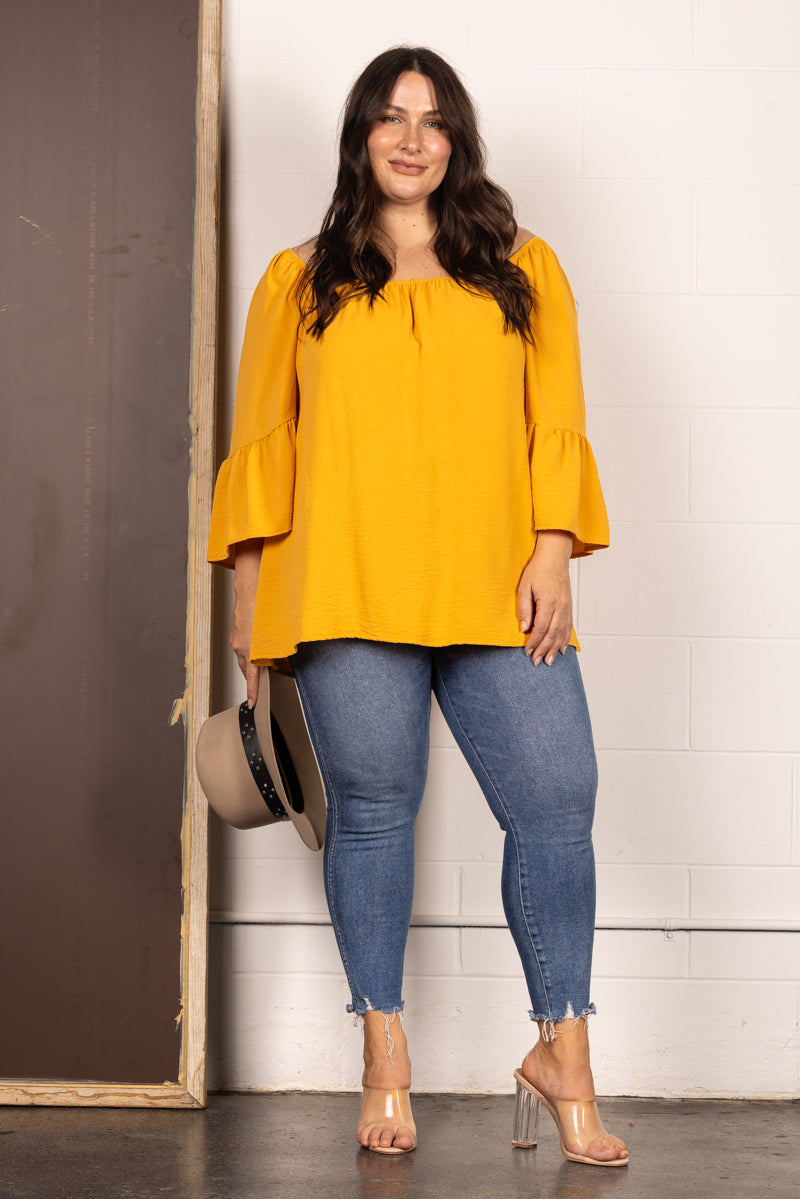 MUSTARD SQUARE NECK 3/4 BELL SLEEVES PLUS SIZE TOP T2001-3