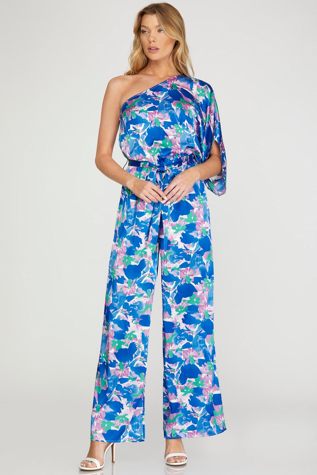 Make a statement in this eye-catching one-shoulder jumpsuit that effortlessly blends bold style with comfort. The vibrant print adds personality while the asymmetrical neckline creates an instantly chic silhouette. A front tie detail lets you customize the fit and adds an extra touch of flair. Perfect for turning heads at parties, brunches, or any occasion where you want to stand out. Slip it on and own the room with confidence and sass.