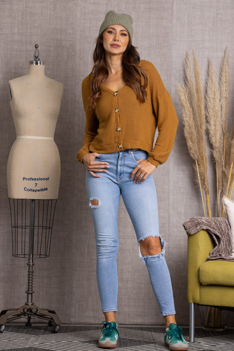 MUSTARD KNITTED LONG SLEEVES W/ BUTTONS TOP S1154