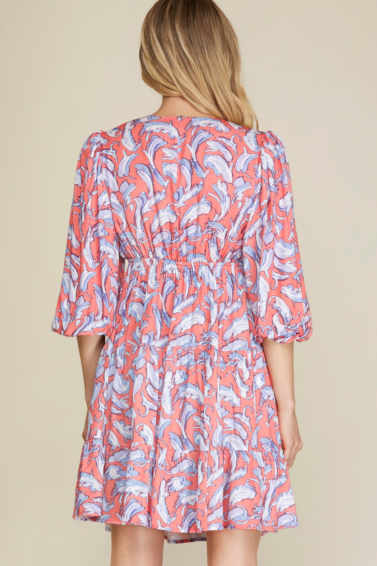 1/2 BUBBLE SLEEVE PRINT TIERED DRESS-SKSY5894
