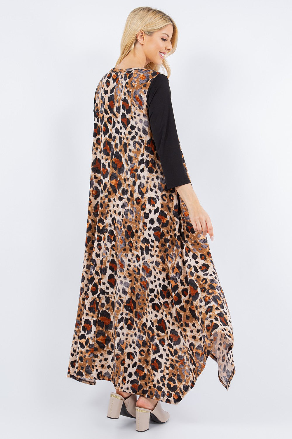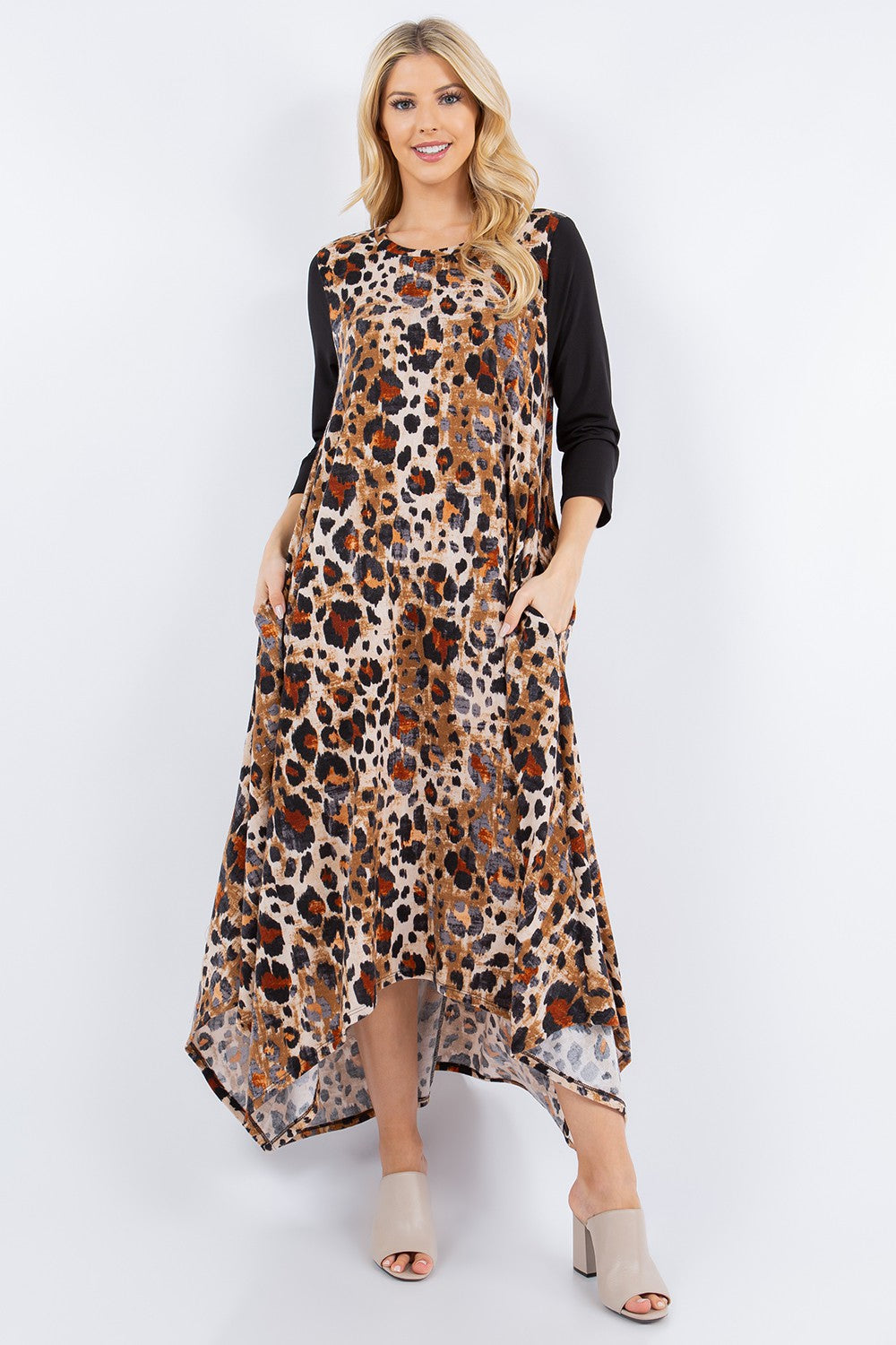 Unleash your wild side with this brown animal print maxi dress. Its unique hi-lo hem and side pockets add functionality to this fashionable piece. Perfect for a day out with the girls or a casual date night. Roar in style (without sacrificing comfort)!