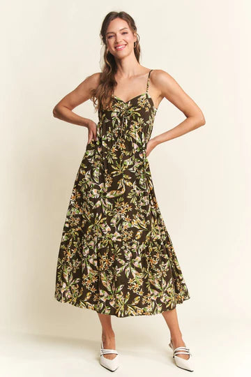 Get ready to make a statement in this BROWN ADJUSTABLE SPAGHETTI STRAP-TIERED MIDI DRESS! With its adjustable straps, this dress offers the perfect fit for any occasion. The tiered design adds a playful touch while the midi length offers both style and comfort. A must-have for your wardrobe!