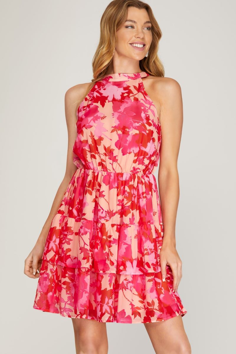 HOT PINK FRONT-TIE RUFFLED HEM WOVEN MINI DRESS SKSY6900