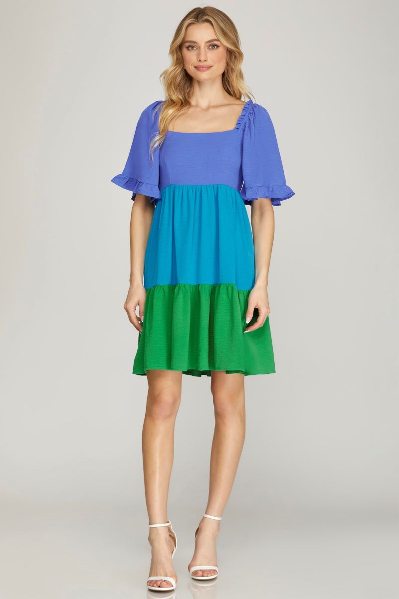 SHORT SLEEVE TIERED BUTTON DOWN SHIRT COLLARED WOVEN DRESS