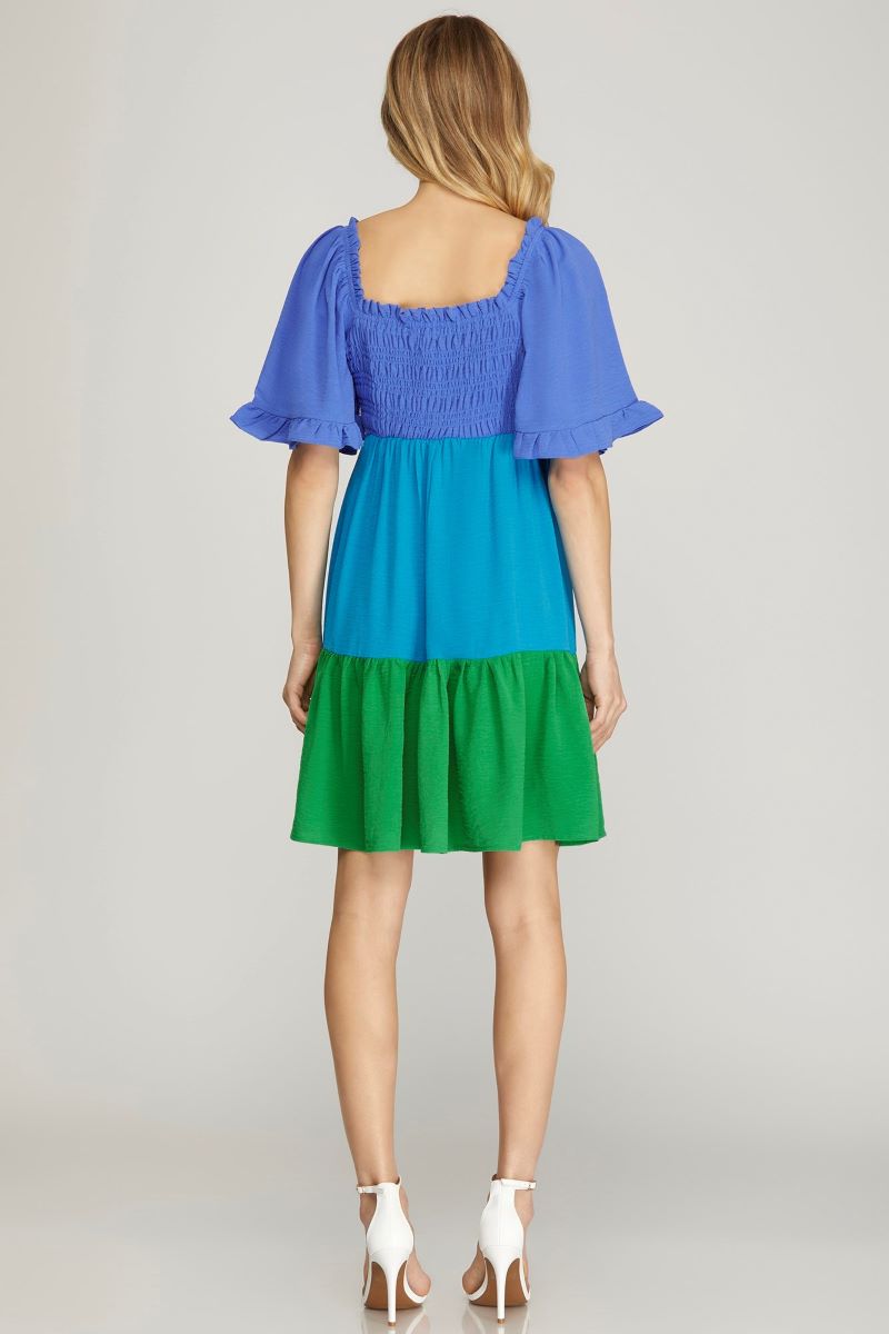 BLUE RUFFLE SLEEVES FRENCH TERRY MINI DRESS