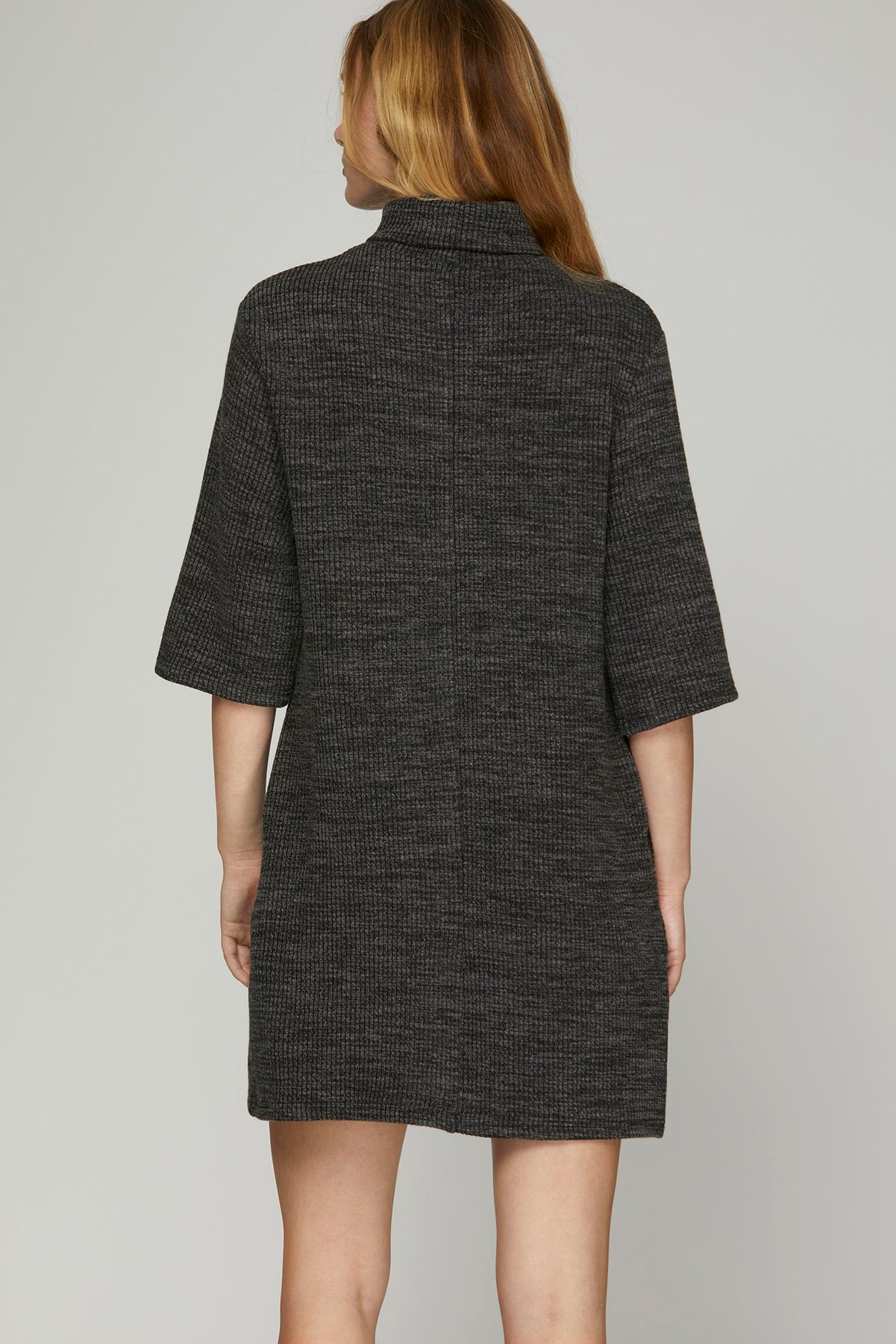 HALF SLEEVE TURTLE NECK KNIT DRESS WITH POCKETS