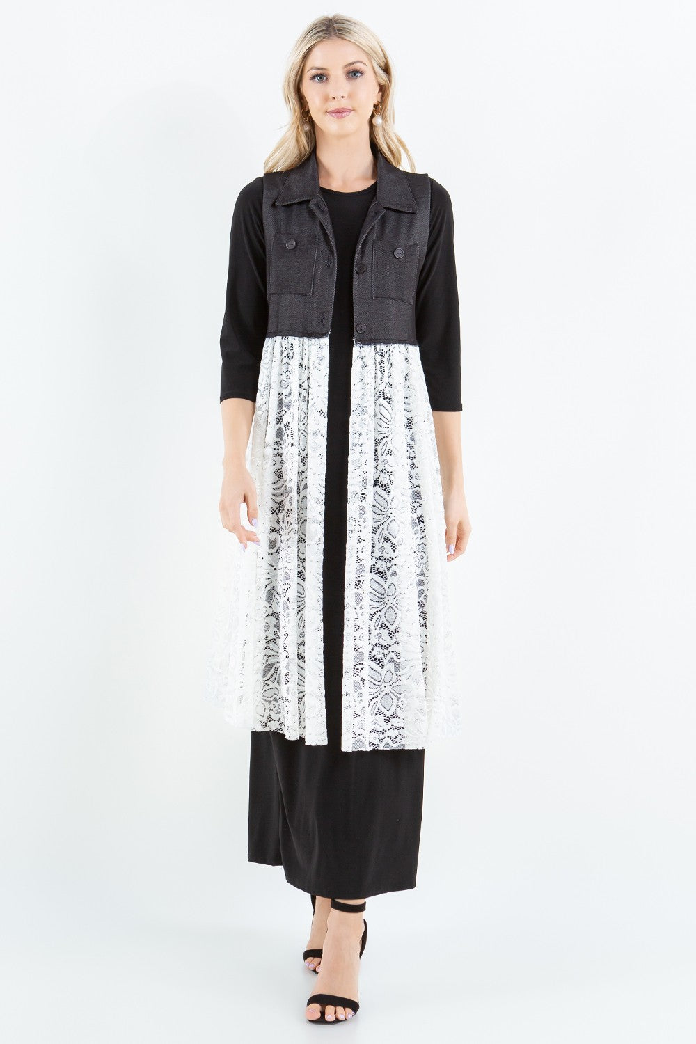 Add a dash of fun to your wardrobe with this Black and Ivory Stretchy Denim Vest. Designed for comfort and style, its stretchy fabric lets you move freely while the contrasting colors make your outfit pop. Perfect for layering or rocking solo, this vest adds a playful twist to any look.