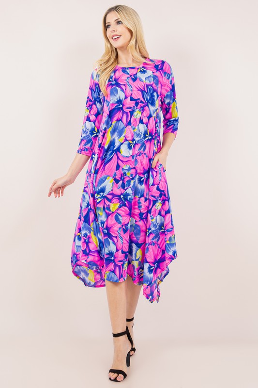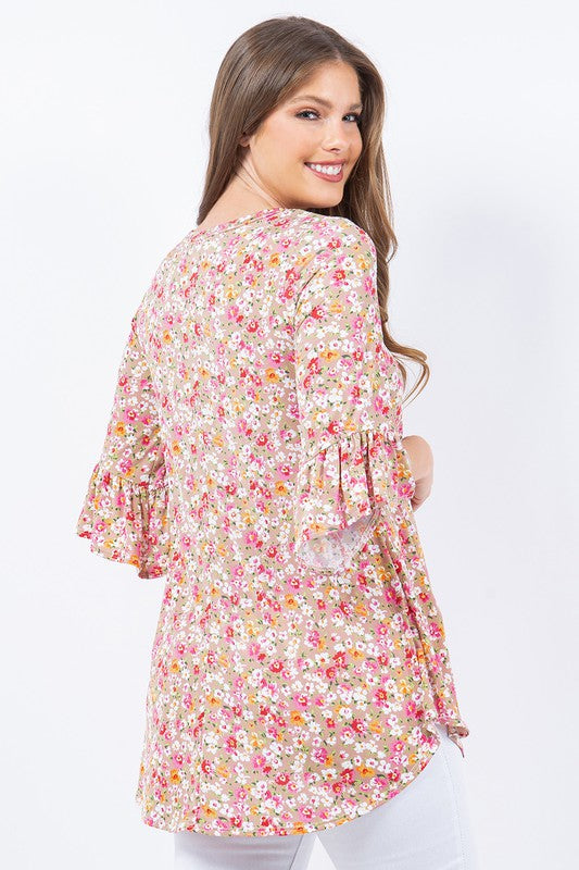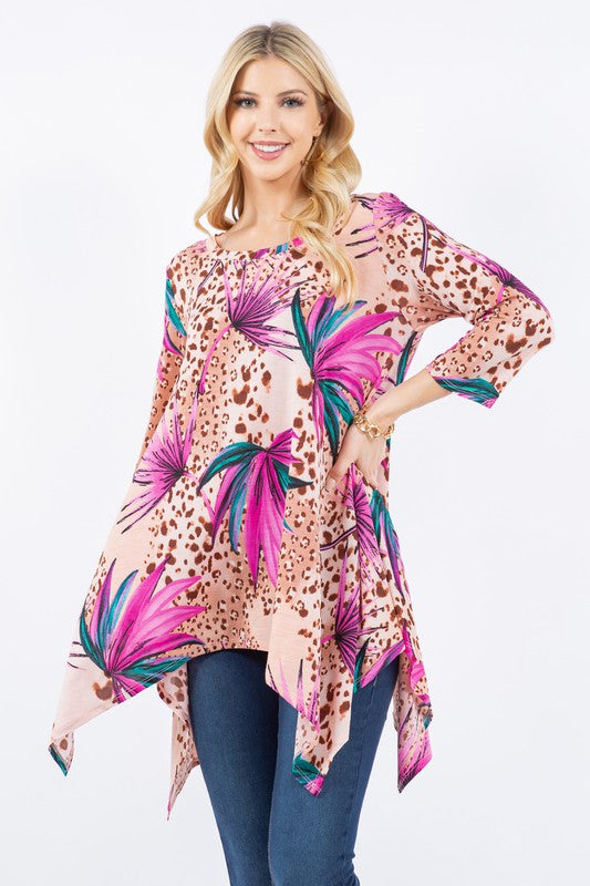 PINK SHARKBITE 3/4 SLEEVES TUNIC TOP