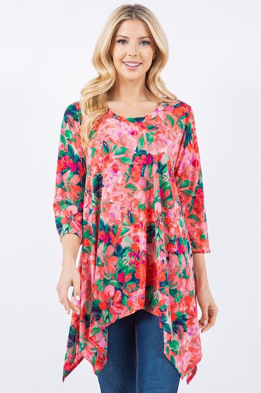 CORAL SHARKBITE 3/4 SLEEVES TUNIC TOP