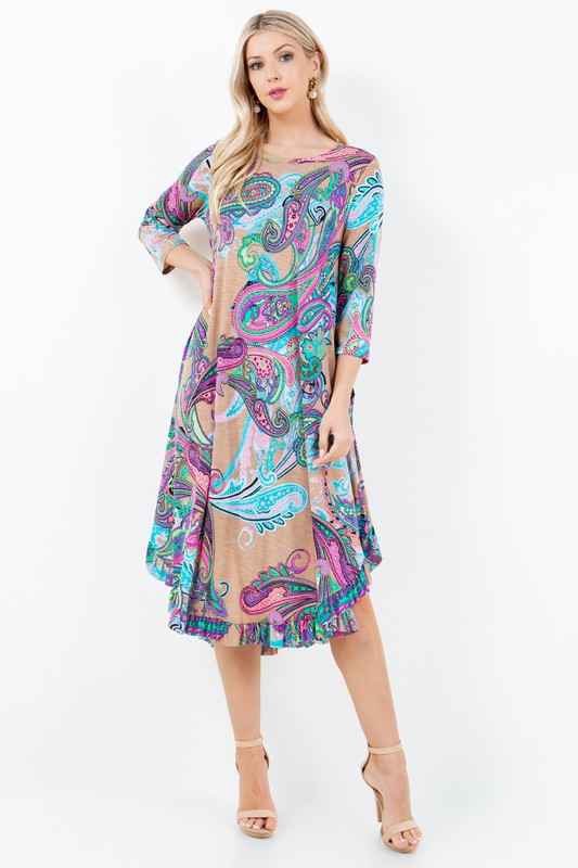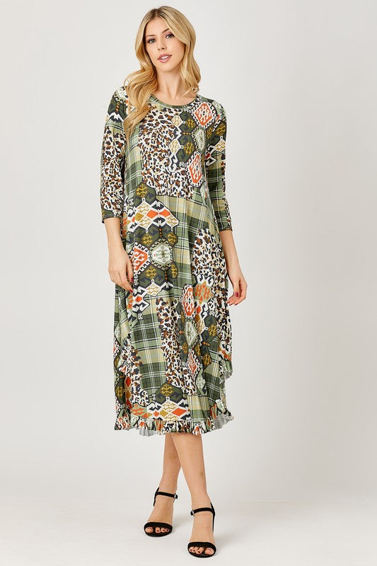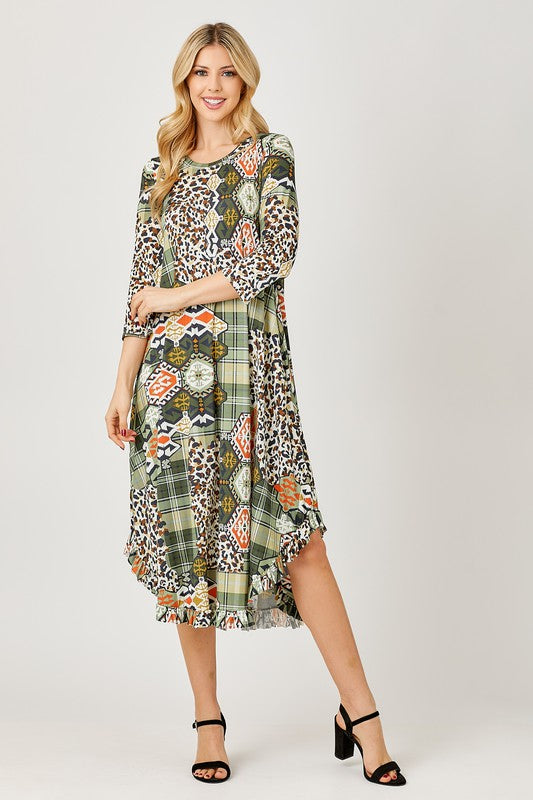 TAUPE 3/4 SLEEVES ASYMMETRICL CONTRAST TUNIC TOP