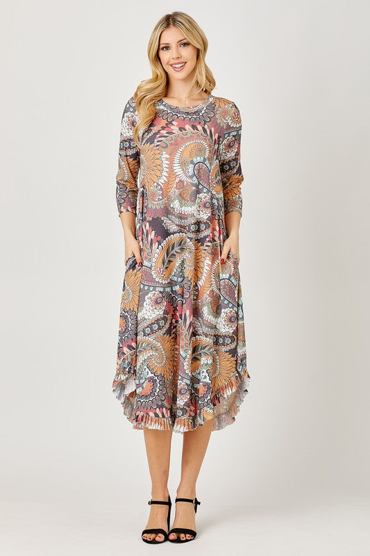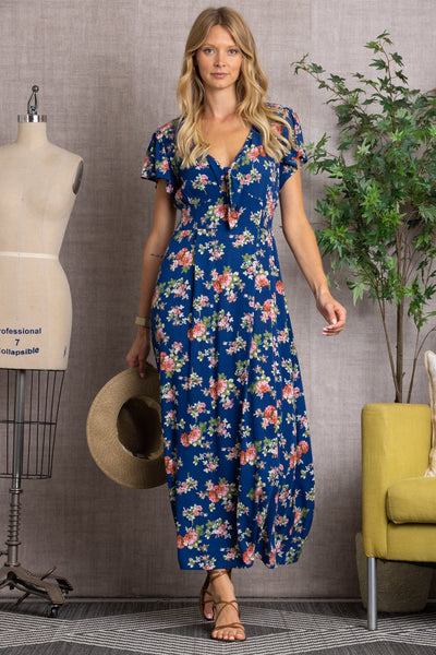 BLUE FLORAL PRINT RUFFLED SLEEVES W/ POCKETS MINI DRESS SKSY8728