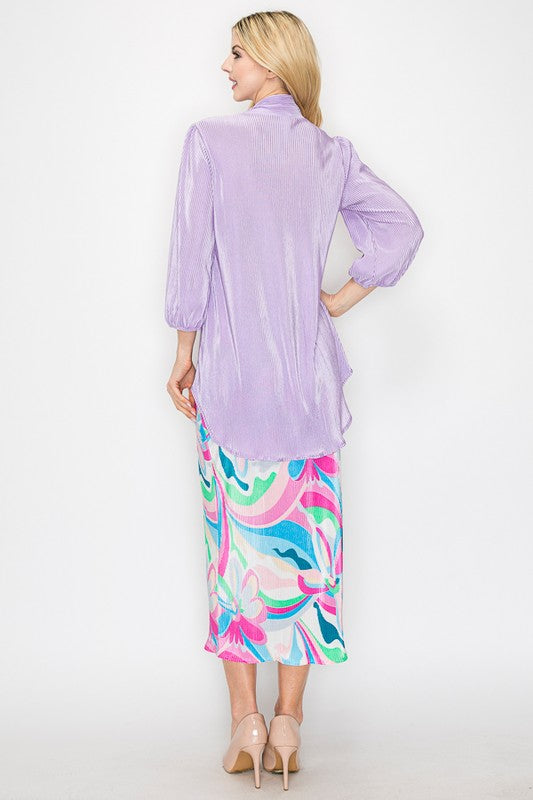 LAVENDER TIE-NECK 3/4 SLEEVES MODEST TUNIC TOP