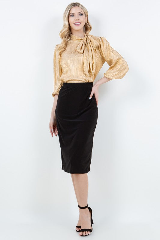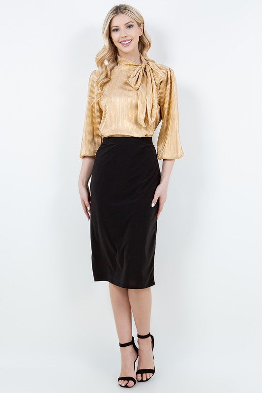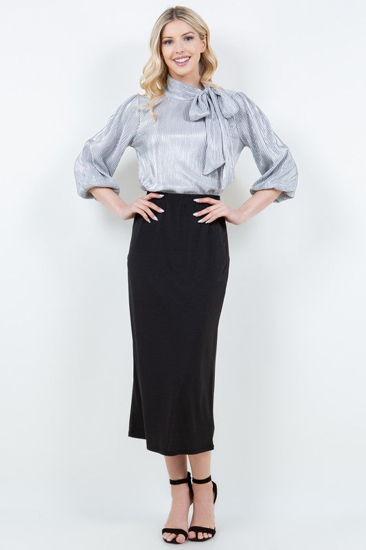 SILVER TIE-NECK 3/4 SLEEVES MODEST TUNIC TOP
