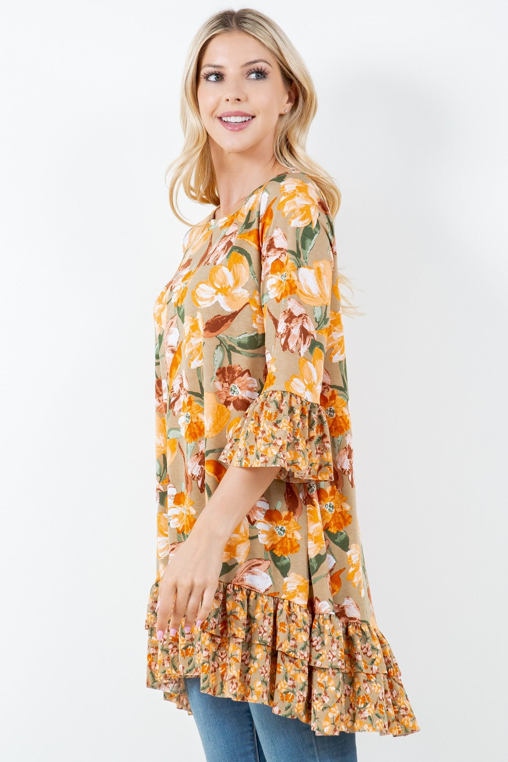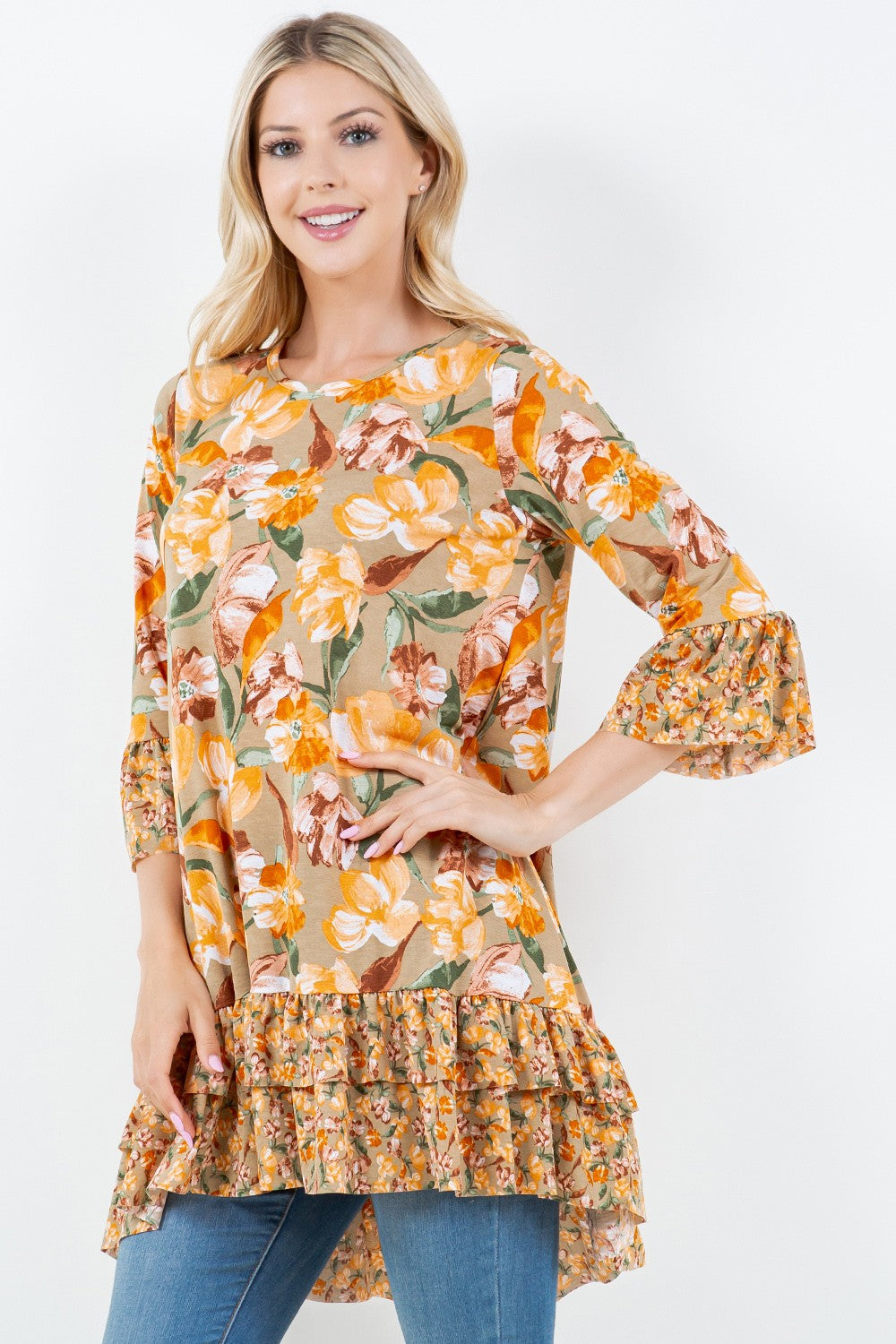 FLOUNCE SLEEVES TIERED DOUBLE GAUZE TUNIC TOP