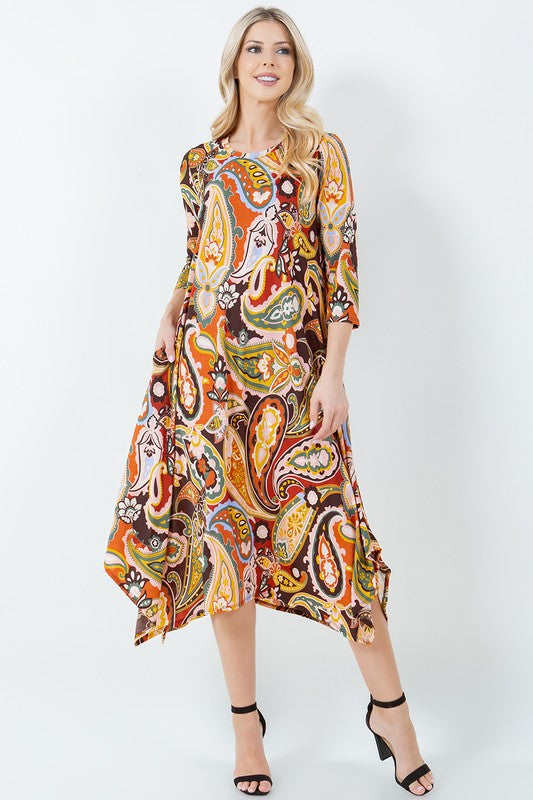ORANGE ABSTRACT PRINT TUNIC TOP DETAIL ON THE SLEEVES