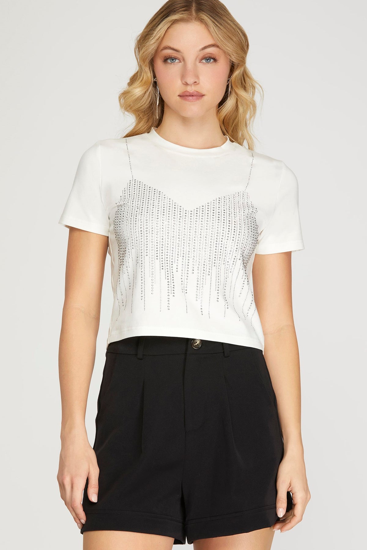 Sparkle and shine in this show-stoppingĀ  top that's basically a wearable work of art! Covered in dazzling rhinestone details, this piece transforms any outfit into something totally glamorous. Whether you're heading out for a night on the town or just want to feel extra fabulous, this embellished beauty delivers serious style points. The intricate rhinestone placement catches the light beautifully, making you the center of attention wherever you go. Perfect for anyone who believes more sparkle is always the answer!