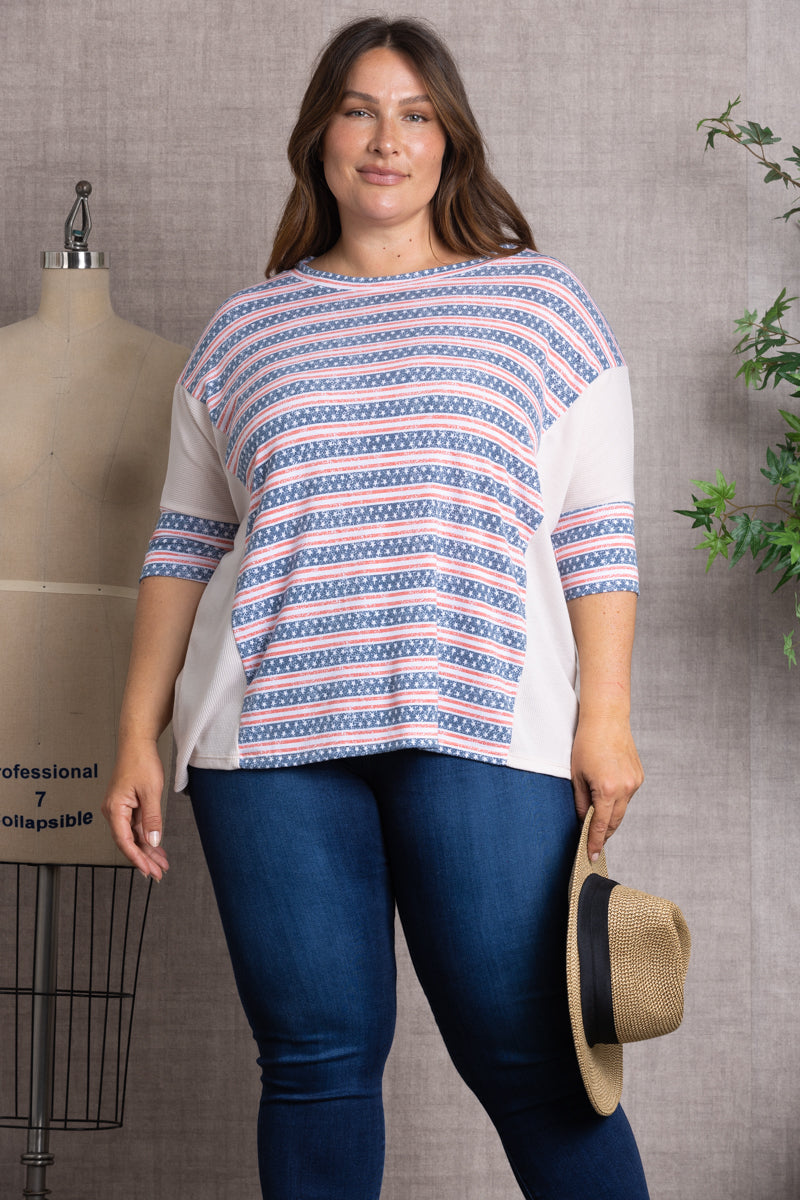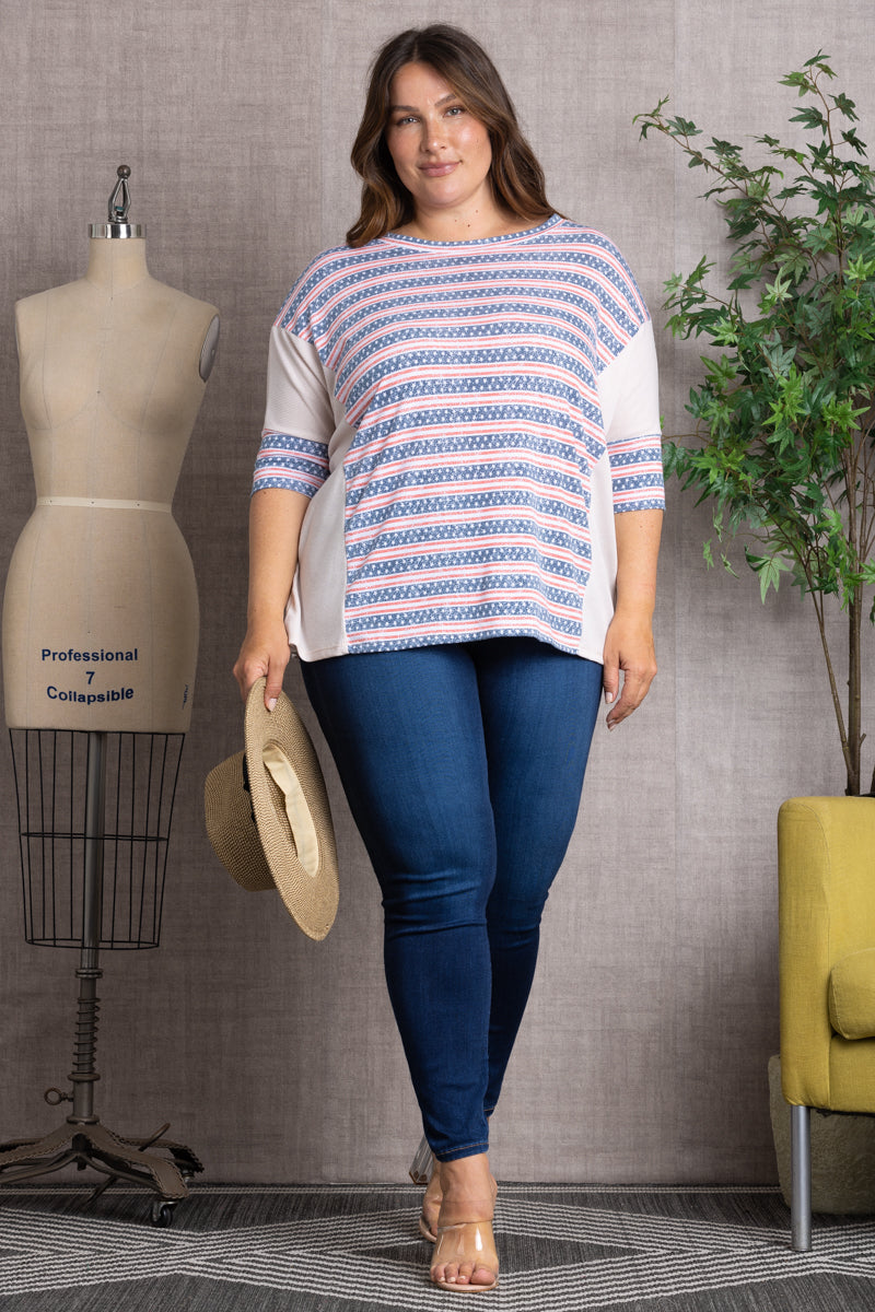 STARS PRINT CONTRAST PLUS SIZE TOP